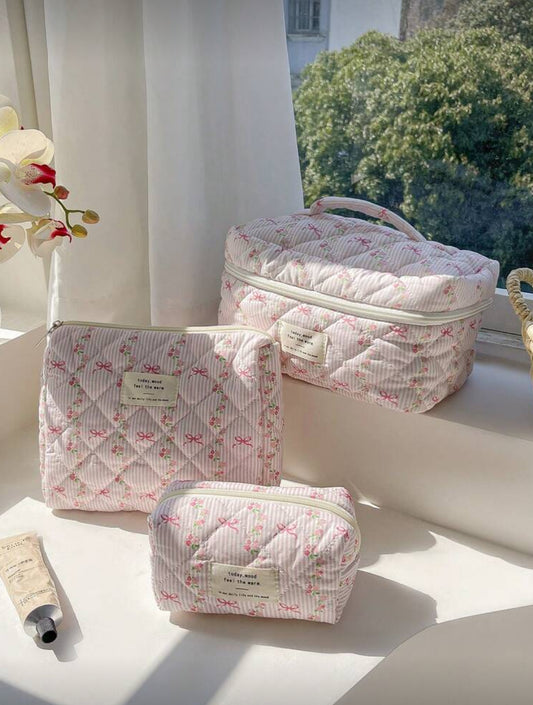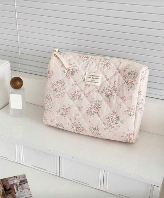 Cosmetiquera a colchada con estampado floral M+L