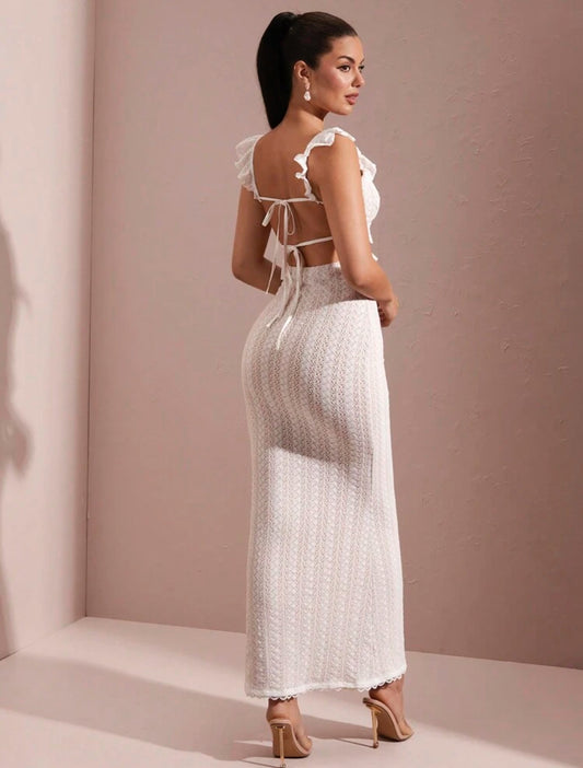 Vestido Blanco Largo Abertura en la Espalda