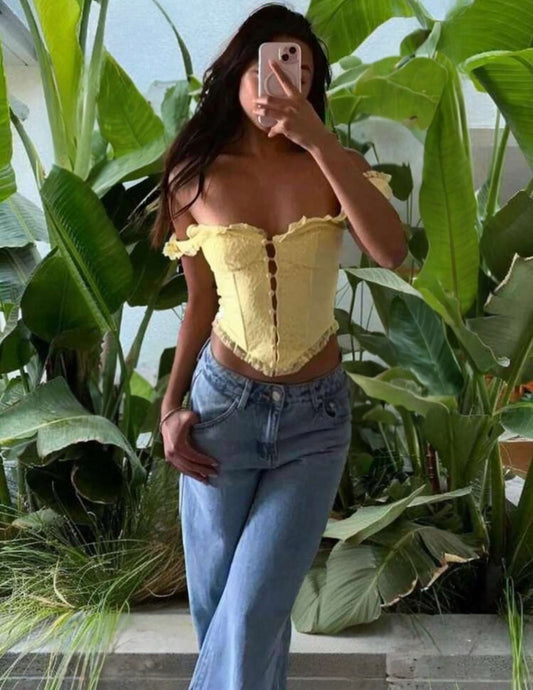 Top Corset Amarillo Con Encaje